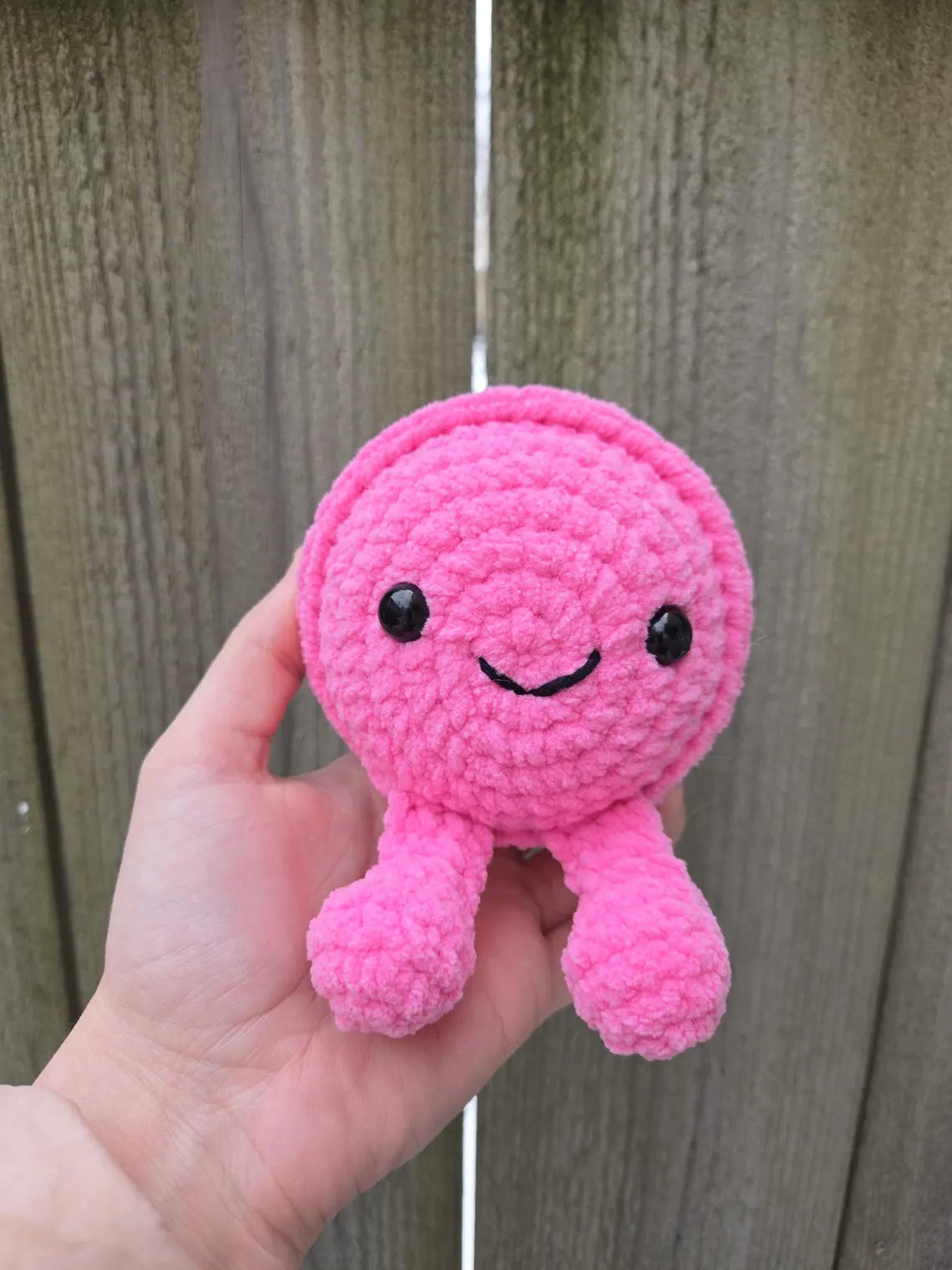 Whether you are looking for a unique gift for a baker, a cute sensory toy, or a "treat" for your plushie collection, this crochet macaron offers a charming, tactile experience. Its vibrant pink color and realistic dessert design make it a standout piece of handmade fiber art.